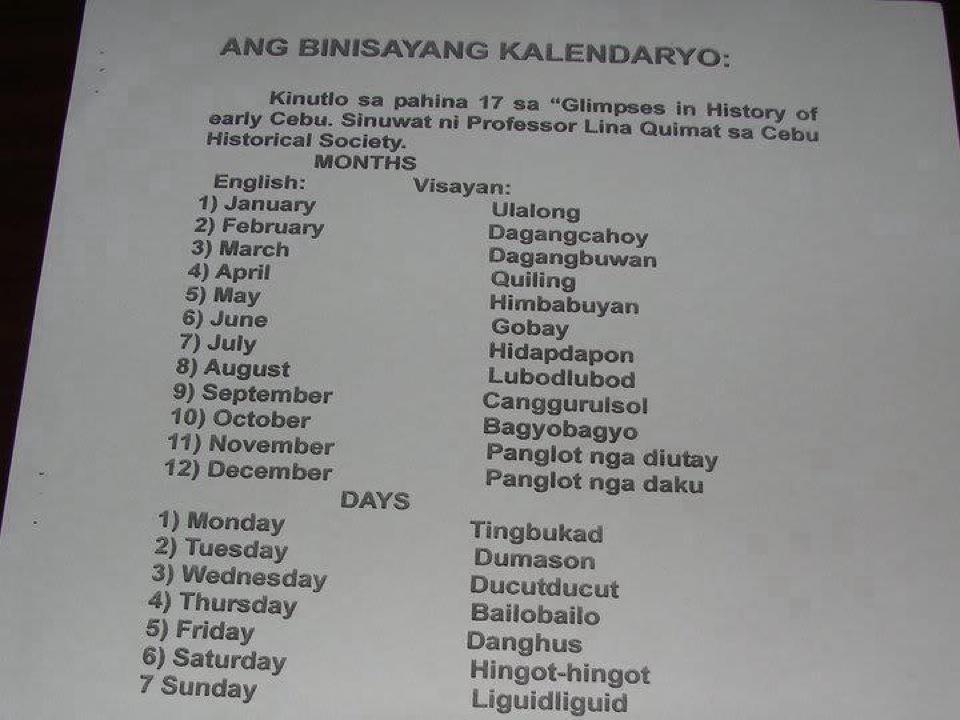 Nakita ku lang ni sa uban Forums adi'a sa Internet, Aduna diay ta terms sa atu'ang Calender months ug days, ganahan ta ku e bahin dinhi :)